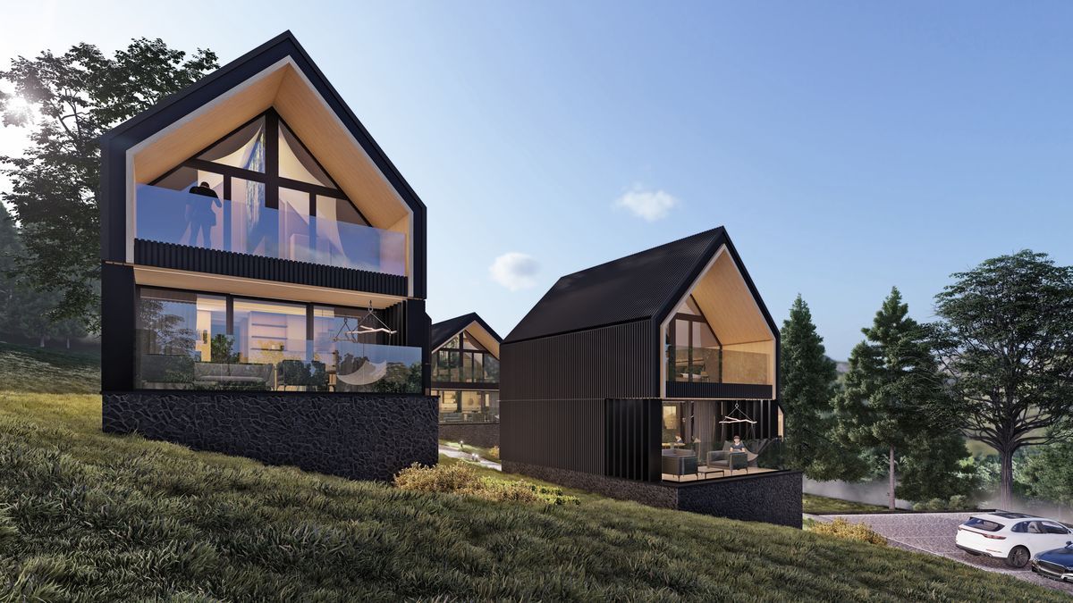 Aby niczym nie przesłaniać otwarć widokowych zarówno na tarasie parteru jak i balkonie na poddaszu zastosowane zostały szklane balustrady. Konieczne ze względu na duże spadku terenu cokoły budynków, zostały wykorzystane jako pomieszczenie magazynowe na sprzęty sportowe i wypoczynkowe oraz pomieszczenie techniczne umożliwiające obsługę serwisową budynków bez naruszania prywatności przebywających w nich gości. Zagospodarowanie terenu Campo Resort zaprojektowane zostało w taki sposób aby budynki tworzyły luźną, z pozoru przypadkową krajobrazową kompozycję, niczym w niewielkiej alpejskiej wiosce. Wszystkie domy zwrócone są swoimi przeszklonymi ścianami w tę samą stronę i usytuowane w taki sposób aby zapewnić pełną prywatność gościom każdego z domów, jednocześnie zapewniając niezakłócony niczym widok na las i góry.