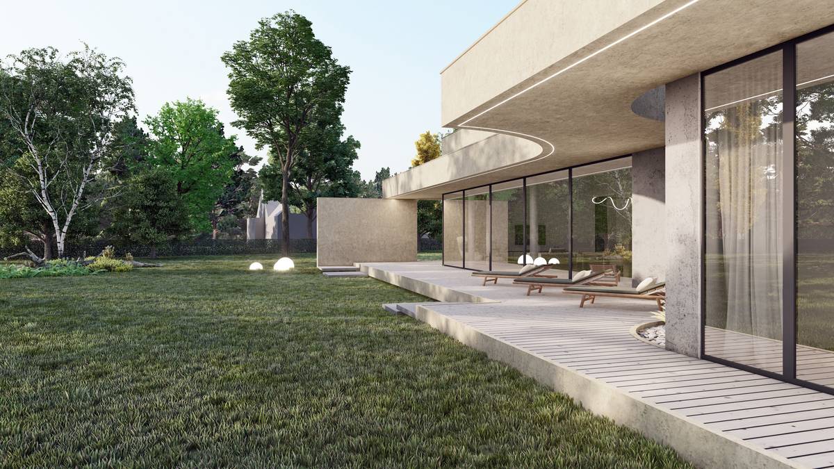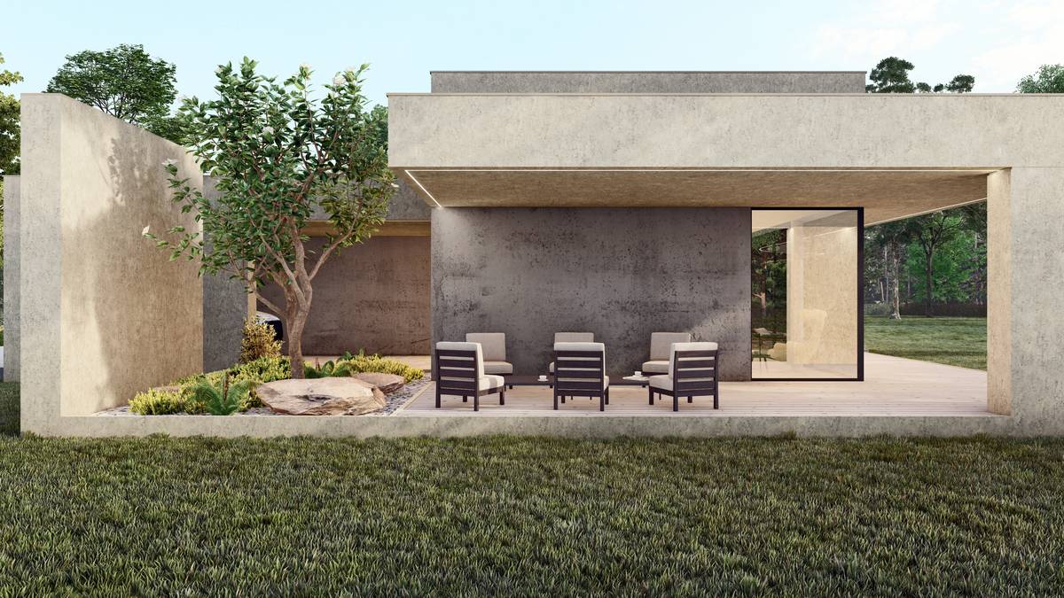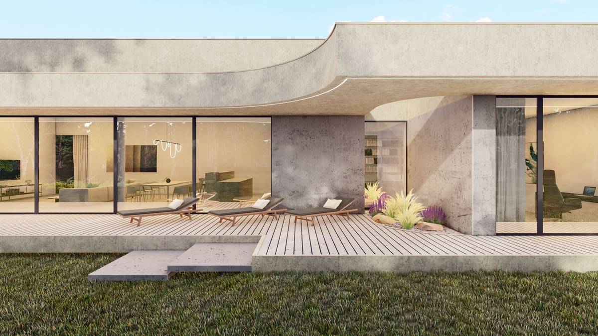 Horyzontalny układ domu z charakterystycznym, łukowym zadaszeniem głównego tarasu to znak rozpoznawczy Casa Arco. Ten architektoniczny detal nadaje budynkowi lekkości i subtelności. Kompozycję dopełniają wolnostojące ściany, które nie tylko urozmaicają bryłę, ale również pełnią funkcję „filtru prywatności”, zapewniając mieszkańcom intymność i komfort.