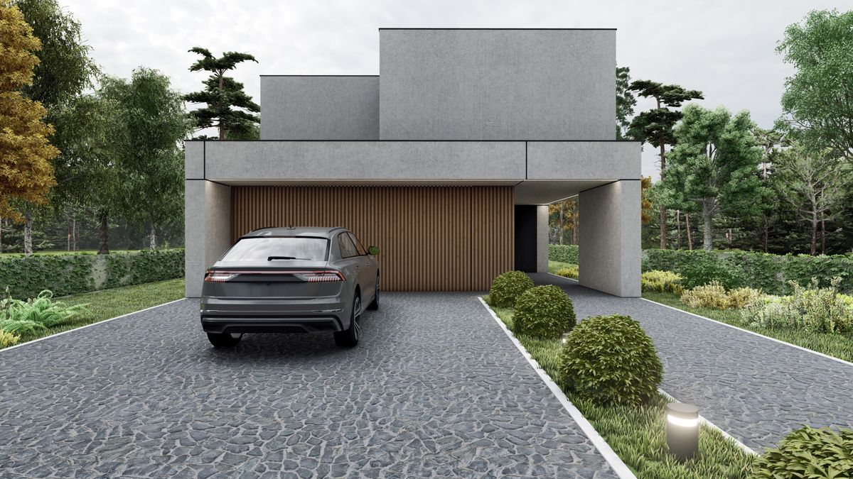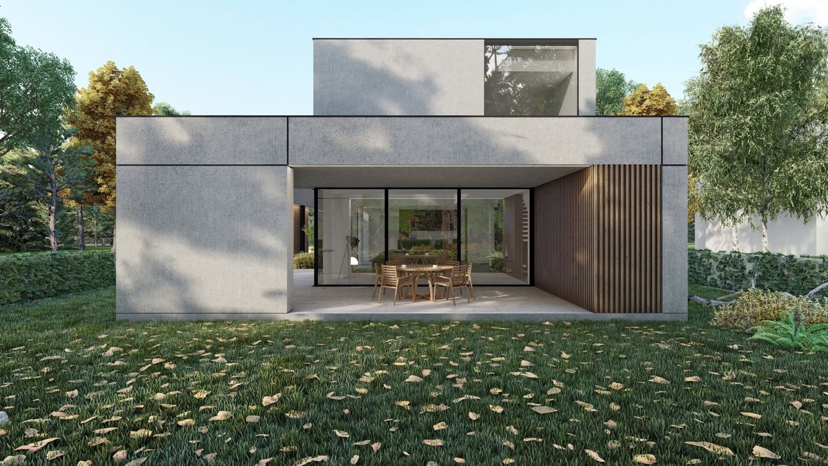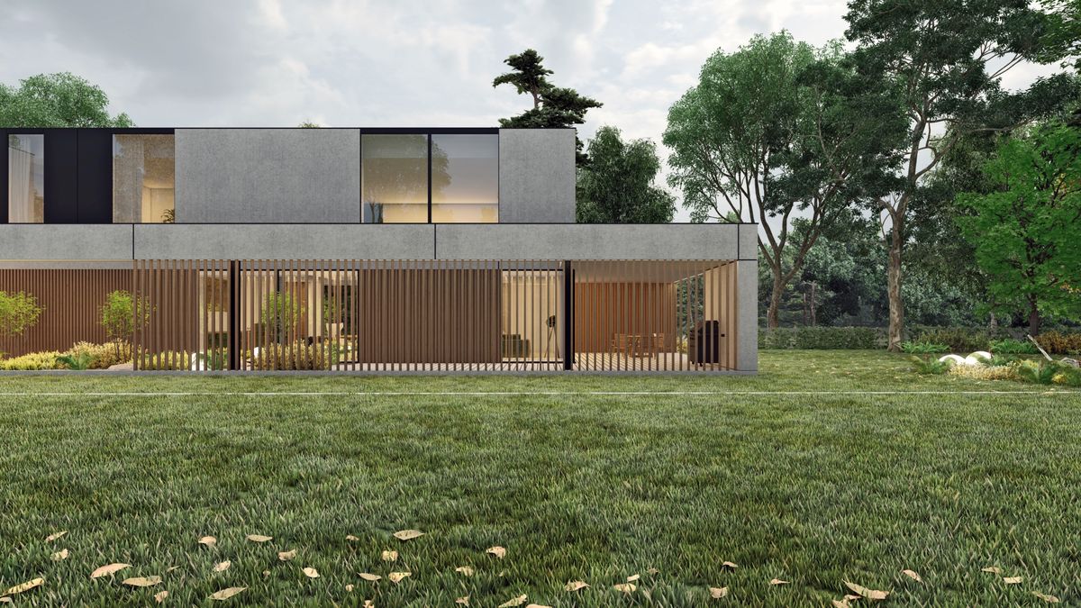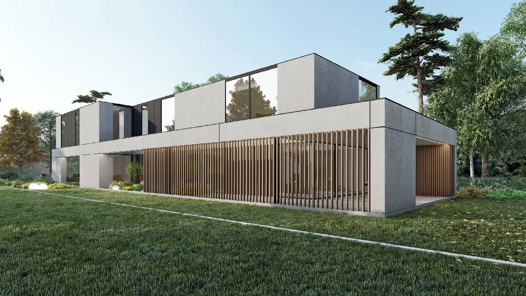 Dom na Długo to projekt nowoczesnej willi zlokalizowanej pod Warszawą na nietypowej, trudnej działce. Ze względu na jej niewielką szerokość oraz znaczną długość, punktem wyjścia stało się wyzwanie skomponowania bardzo wydłużonej i jednocześnie zróżnicowanej tektonicznie bryły budynku. Co za tym idzie, dom przyjął formę, na którą składa się kompozycja prostopadłościennych brył ułożonych na osi wschód-zachód. Ich rozmieszczenie wydziela poszczególne strefy funkcjonalne budynku oraz tworzy podcienia i zadaszenia. Charakterystycznym elementem jest północne patio rozdzielające wizualnie budynek na pół.