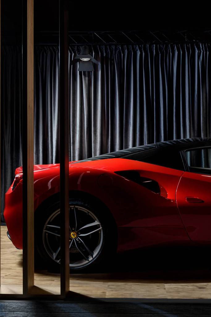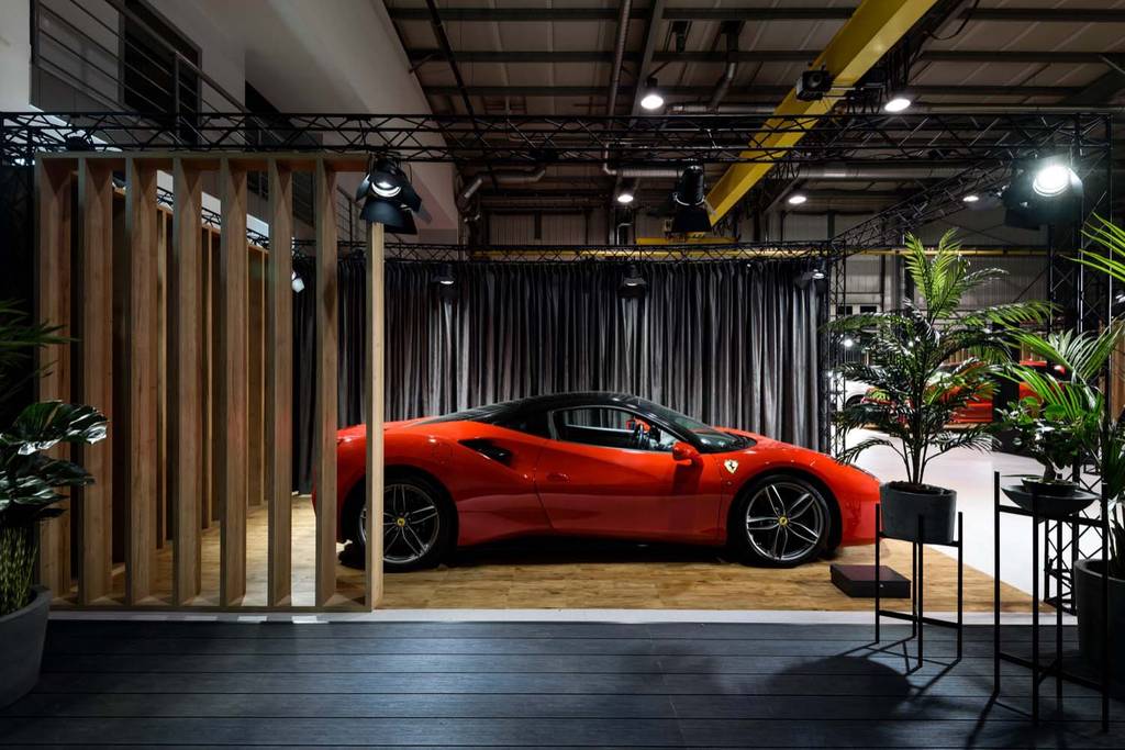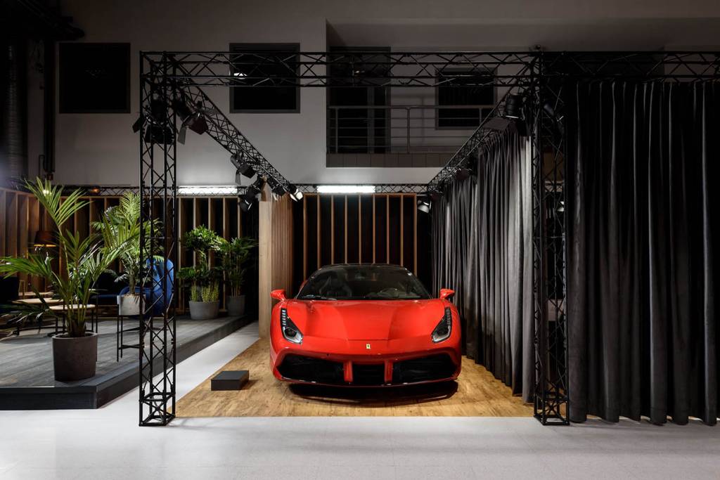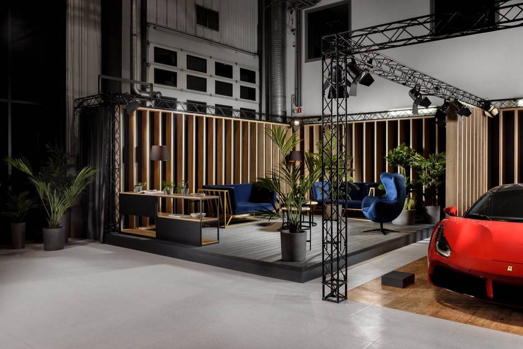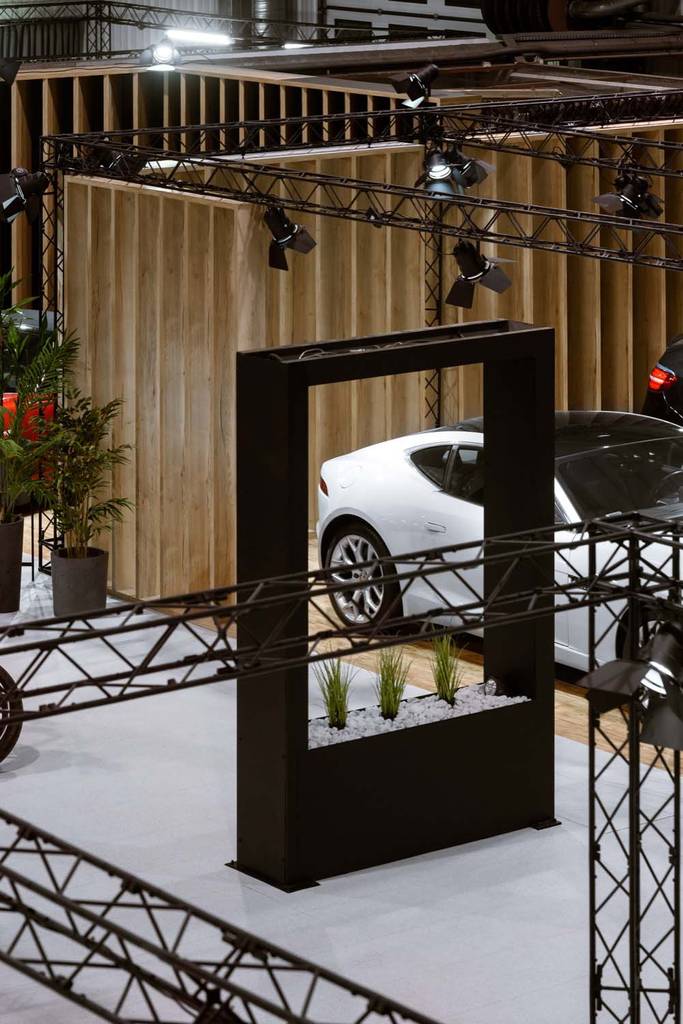 W architekturze showroomu dominują czerń oraz drewno uzupełnione akcentami naturalnej zieleni. Cała kompozycja sprawiać ma wrażenie ciepła, luksusu oraz elegancji. Wspomniana wcześniej modułowość związana jest z kwestią mobilnego charakteru showroomu, który swoją prostotą i łatwością montażu dostosowywać się może do potencjalnie różnych miejsc, w których miałby się znajdować.